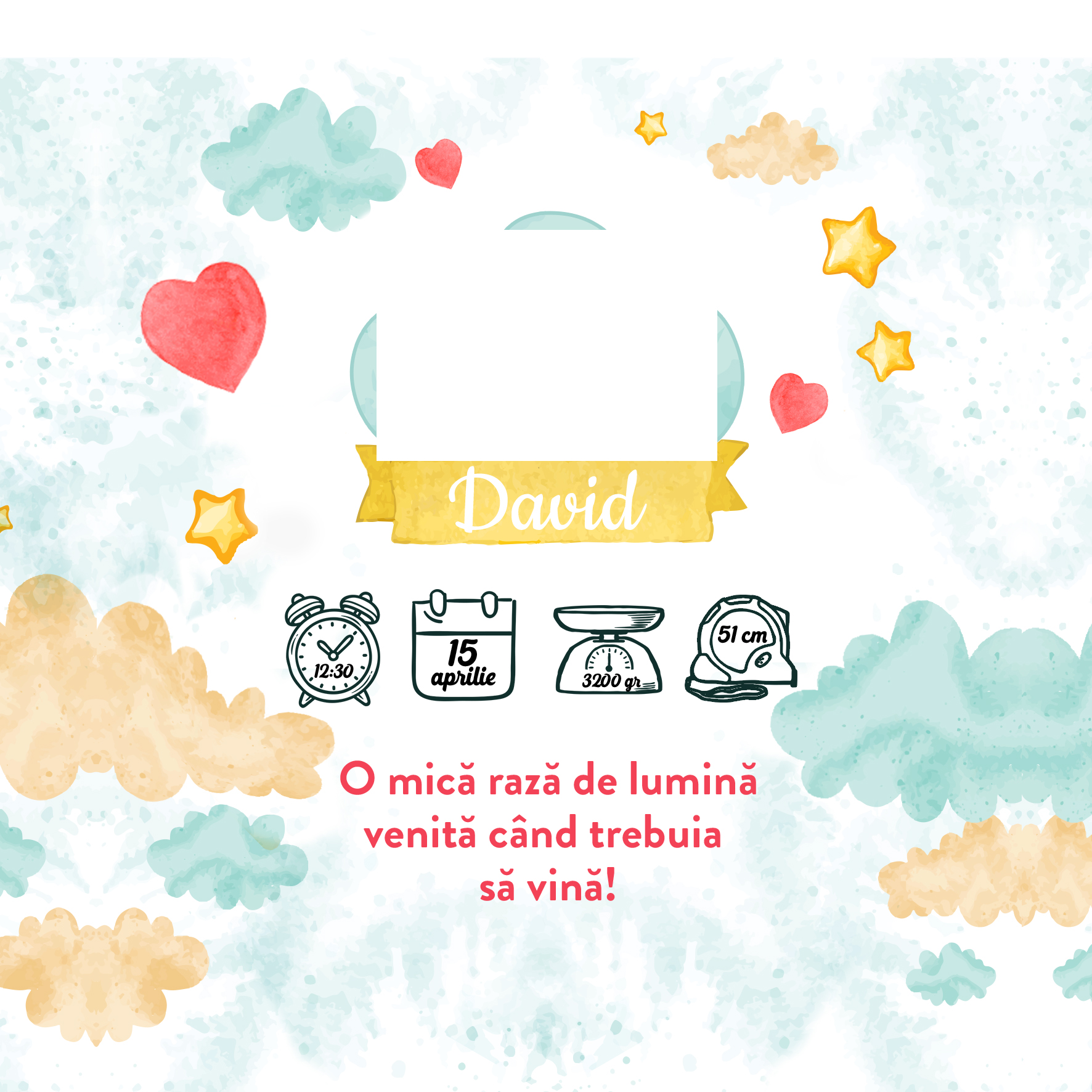 Fotografiile cu cei mici de când sunt bebeluși, sunt cele mai dragi amintiri pentru cei apropiați! Cu o fotografie și detaliile de înălțime, greutate, ora când s-a născut și ziua plus un mesaj deosebit, poți crea un cadou deosebit pe această inimioară din placă de ardezie.