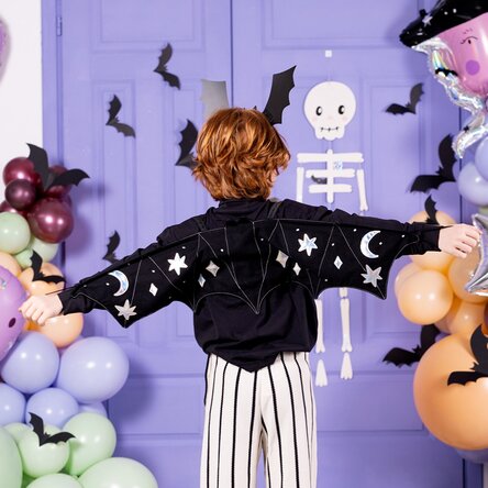 Aripi de liliac pentru copii de Halloween sunt un accesoriu minunat care poate transforma orice copil într-un liliac fermecător sau într-o creatură misterioasă a nopții. Aceste aripi sunt create special pentru a adăuga un plus de farmec și magie costumului de Halloween al copilului tău și pot fi folosite în diverse costume, precum liliac, vampir, vrăjitoare, sau alte personaje fantastice.