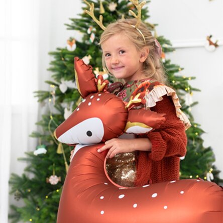 De sărbători, nimic nu se compară cu o îmbrățișare și atmosferă caldă în familie, cadrul perfect pentru o fotografie de pus în ramă. Acum iți poți decora casa în haine de sărbătoare și de Crăciun îi poți bucura pe cei mici cu baloane umflate cu heliu în diferite forme. Căprioara, una din cele mai drăgălașe și gingașe animaluțe, atât de mult iubite de cei mici, vor fi o bucurie imensă, mai ales că dimensiunea se apropie de cea adevărată.