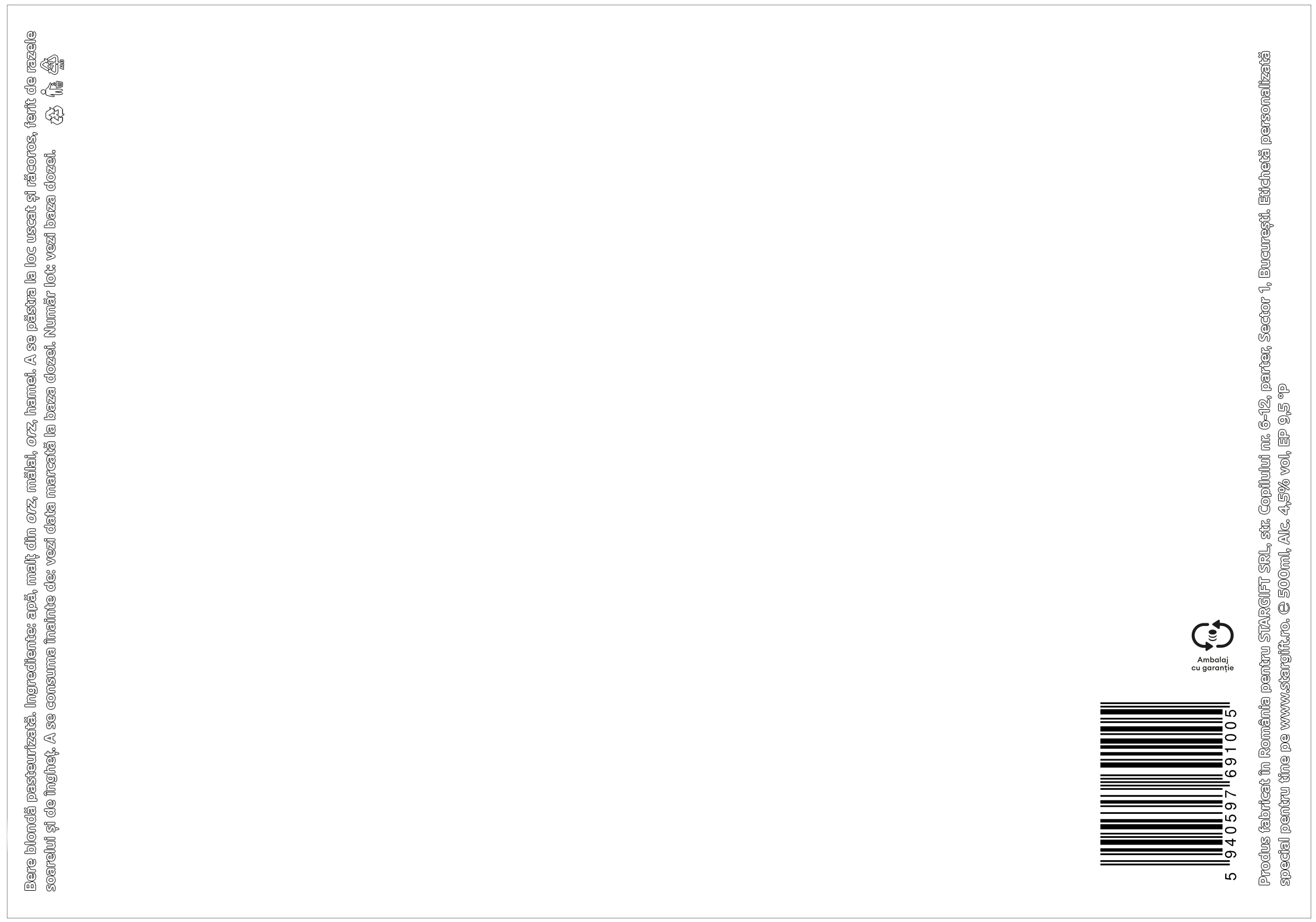 Dimensiuni: doză de 500ml. Dimensiunea etichetei este aproximativ 20x15cm
