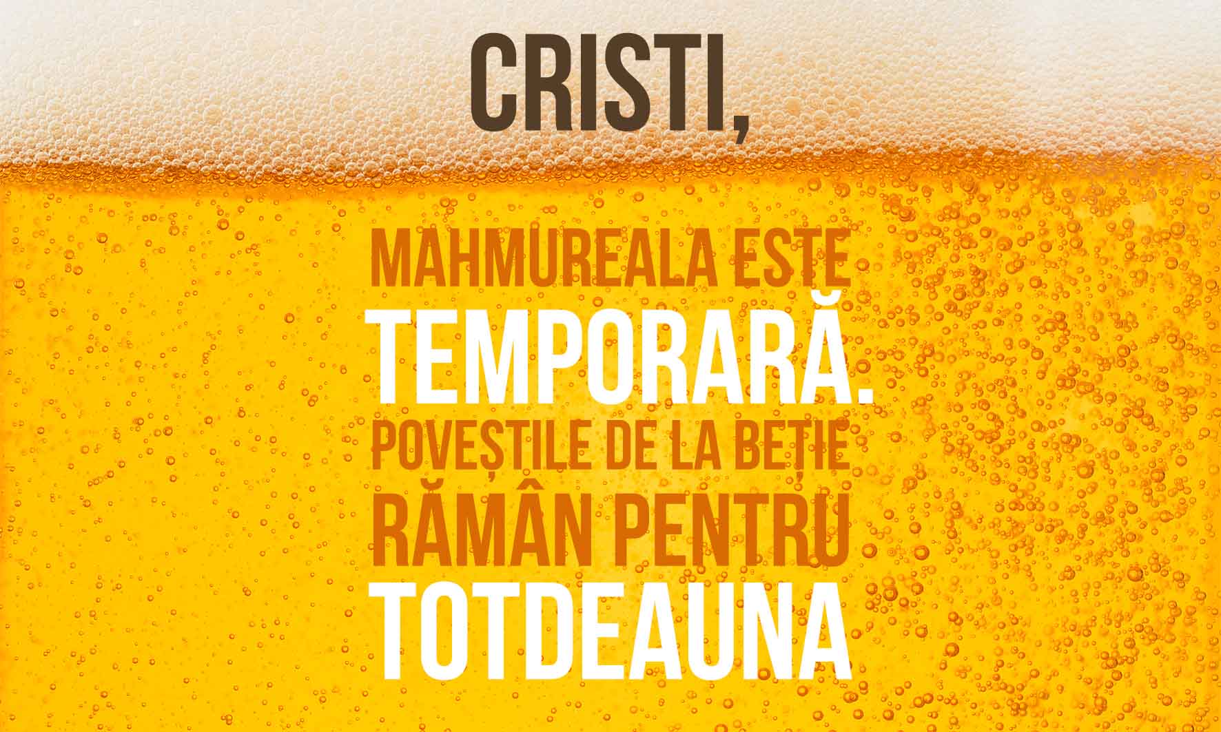 Acceptă invitația berii să te răcorești! Ia-ți amicii și hai să ieșiți la o bere super bună. Pentru cei ce au făcut o pasiune pentru bere le oferim ceea ce le lipsește! O bere personalizată, care să îi surprindă cu adevărat.