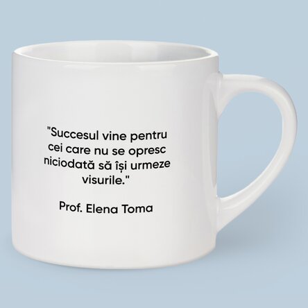 Vezi și alte Cadouri de absolvire, Cadouri de sfârșit de an, Căni espresso personalizate , Toate cadourile de sfârșit de an, Cadouri personalizate, Căni personalizate, Cadouri personalizate la reducere, Toate cănile personalizate, Reduceri săptămânale, Căni pentru absolvire, Căni personalizate.