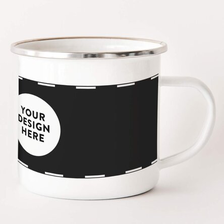 Model cană: Culoare albă, cu margine superioară cromată, personalizată prin imprimare