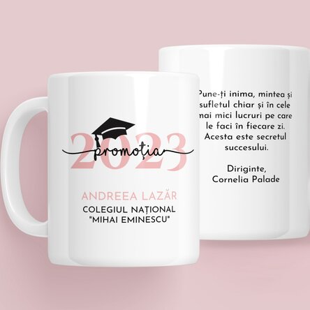 Pentru mulți ea va rămâne o experiență de neuitat, pe care și-o vor reaminti cu drag de-a lungul anilor. De aceea, din dorința de a-ți oferi posibilitatea de a sărbători acest frumos eveniment cu un cadou deosebit, am creat o cană perfectă pentru tine, pe care să o păstrezi ca amintire.