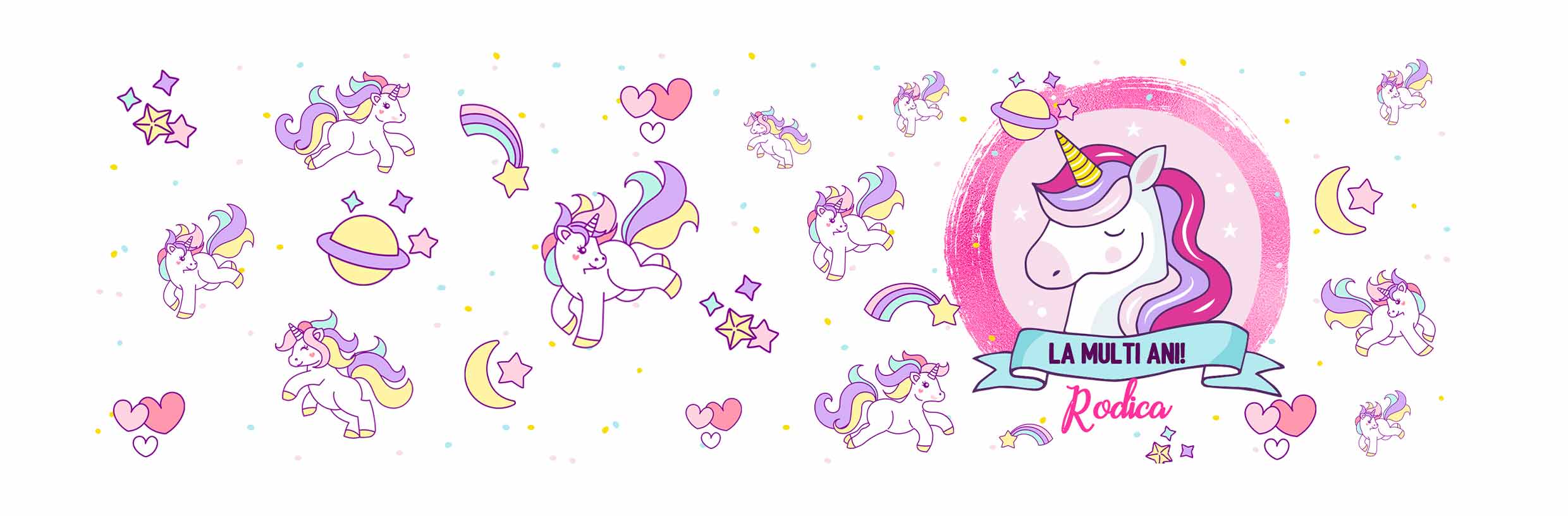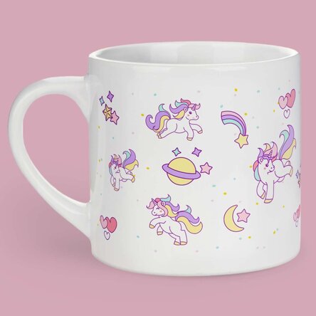 Pentru iubitorii de unicorni și căni colorate această cană este dedicată lor. Dacă vrei să faci o astfel de cană cadou, atunci ai nimerit bine, deoarece o poți personaliza așa cum îți dorești.