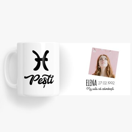 Această cană are dublul avantaj de a conține o fotografie pe care o poți adăuga chiar tu prin intermediul platformei noastre, cât și un mesaj special, prin care transformi acest cadou în ceva cu adevărat original. Este un cadou original deoarece prin intermediul pozei pe care o încarci și a mesajului special, creezi ceva cu adevărat unic.