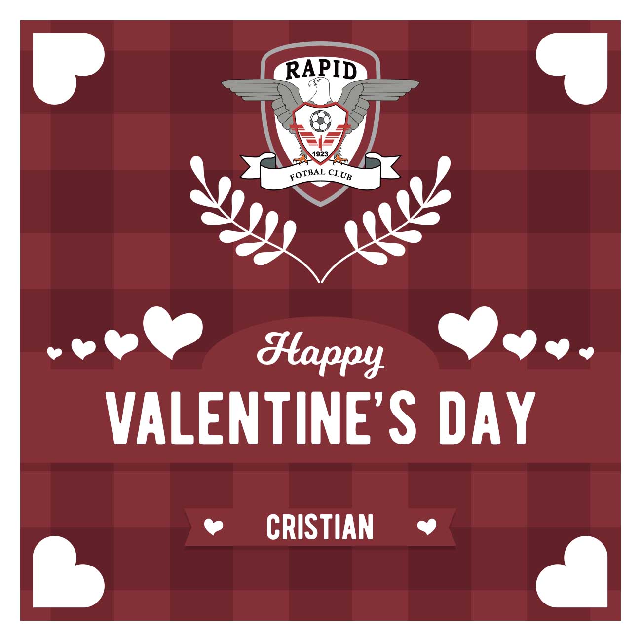 Card FC Rapid personalizat cu text - Happy Valentine's Day