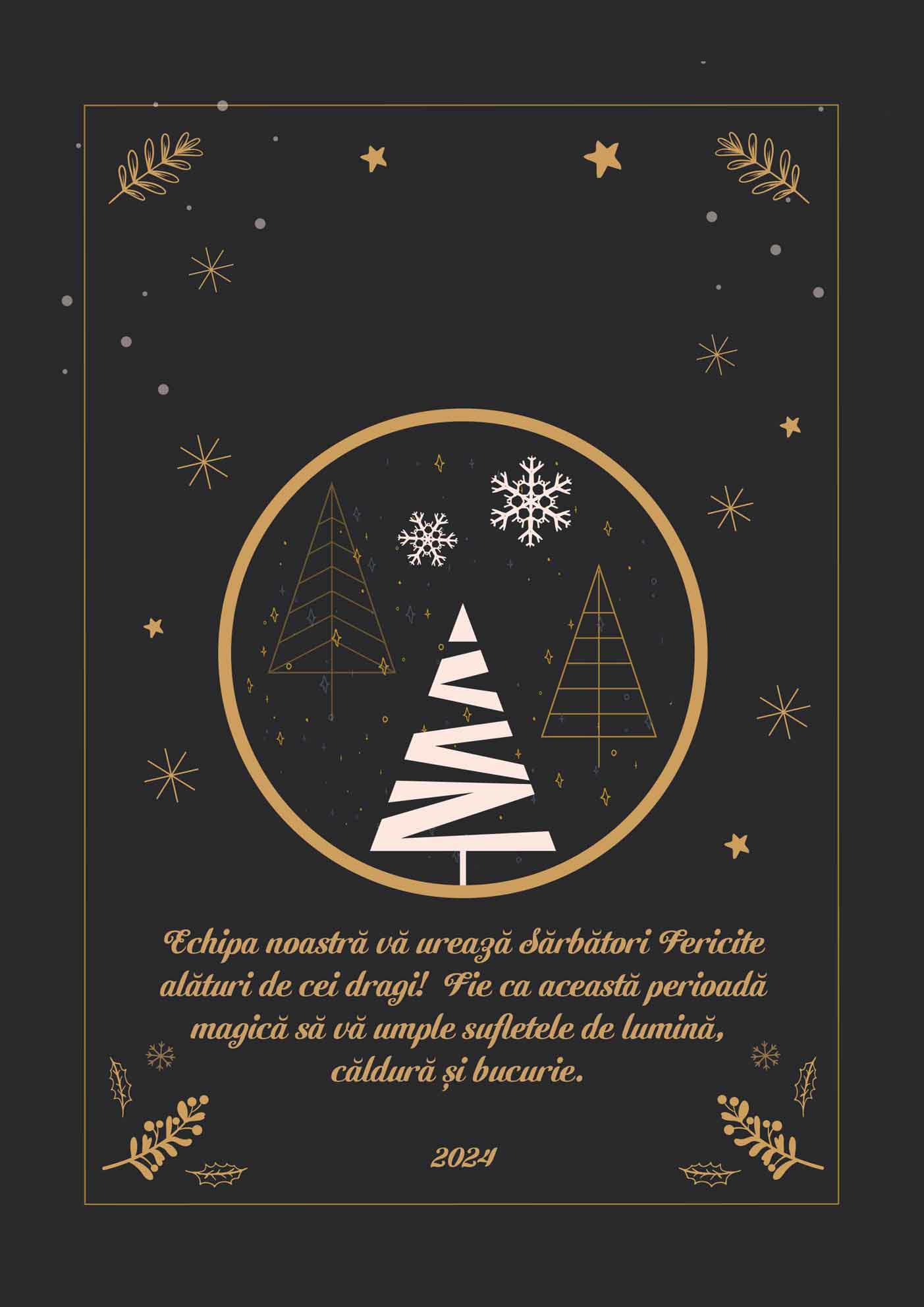 Iar dacă vrei să îți motivezi angajații și să se simtă că au o contribuție importantă în compania ta, indiferent de poziția pe care o ocupă, ori dacă vrei să oferi o atenție deosebită colaboratorilor tăi, noi îți recomandăm acest card personalizat cu motive de Crăciun și cu logo-ul companiei tale pentru a le transmite cele mai calde și frumoase urări de sărbători.