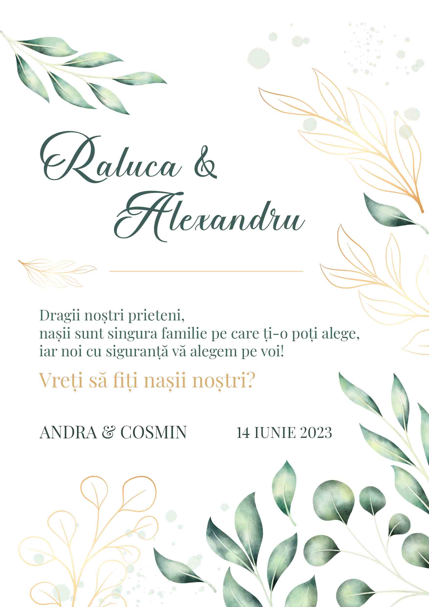 Vezi și alte Cadouri de nuntă și cununie, Cadouri pentru cerere de nași, Felicitări, carduri și invitații de nuntă și cununie, Invitații personalizate pentru nuntă, Save the Date, Toate cadourile pentru nuntă și cununie, Cadouri pentru nașii de cununie, Cadouri personalizate, Felicitari si carduri la reducere, Cadouri, Toate felicitările și cardurile personalizate, Felicitări și carduri cu text, Invitații personalizate, Cadouri de nuntă și cununie, Cadouri pentru nași, Carduri personalizate, Felicitări și carduri personalizate.