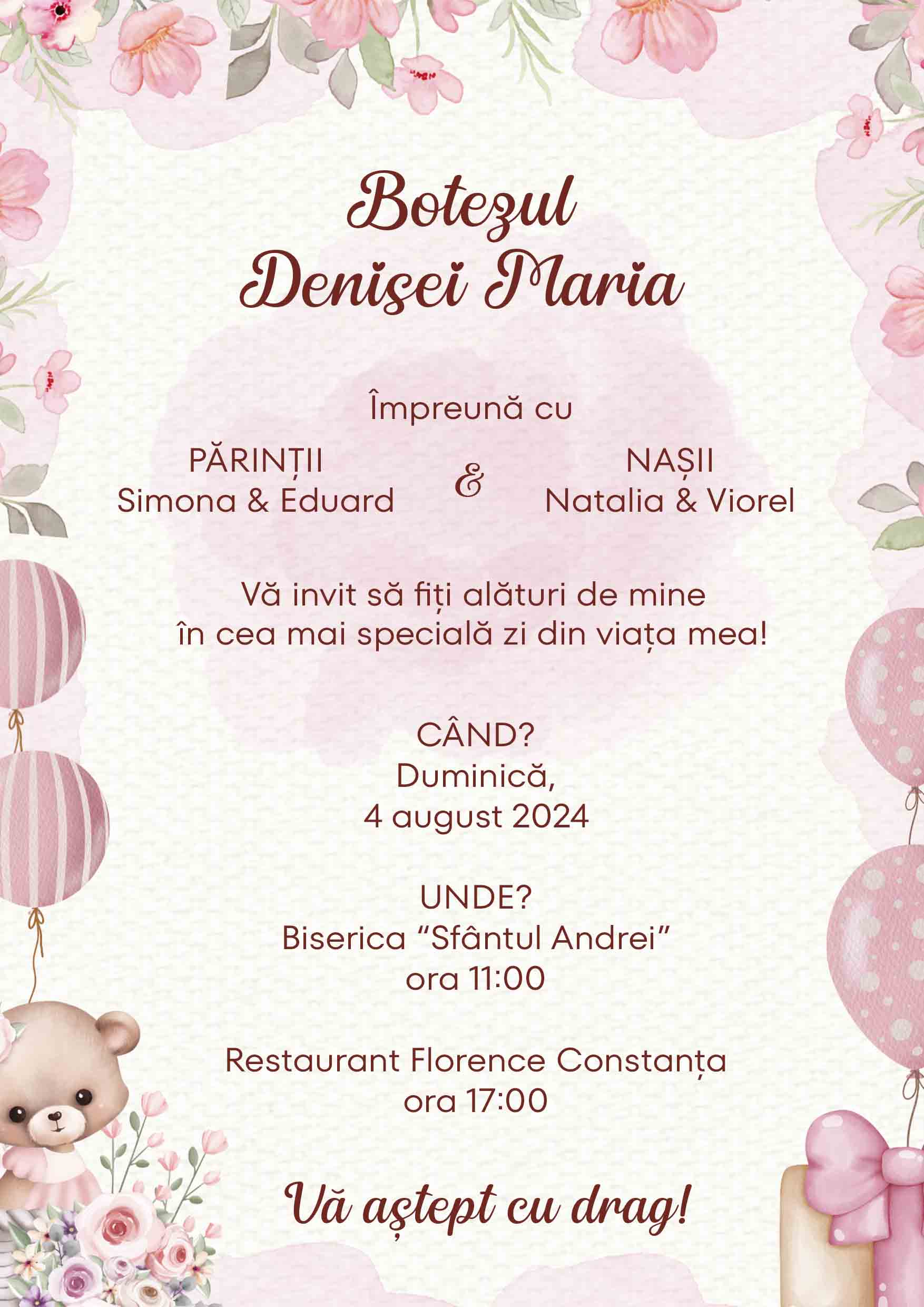 Vezi și alte Cadouri pentru botez, Cadouri personalizate pentru botez, Invitații personalizate pentru botez, Toate cadourile pentru copii, Cadouri pentru copii, Toate felicitările și cardurile personalizate, Copii, Invitații personalizate, Cadouri personalizate pentru botez, Felicitari si carduri reduse cu 60%, Cadouri personalizate la reducere, Carduri personalizate, Felicitări și carduri personalizate.