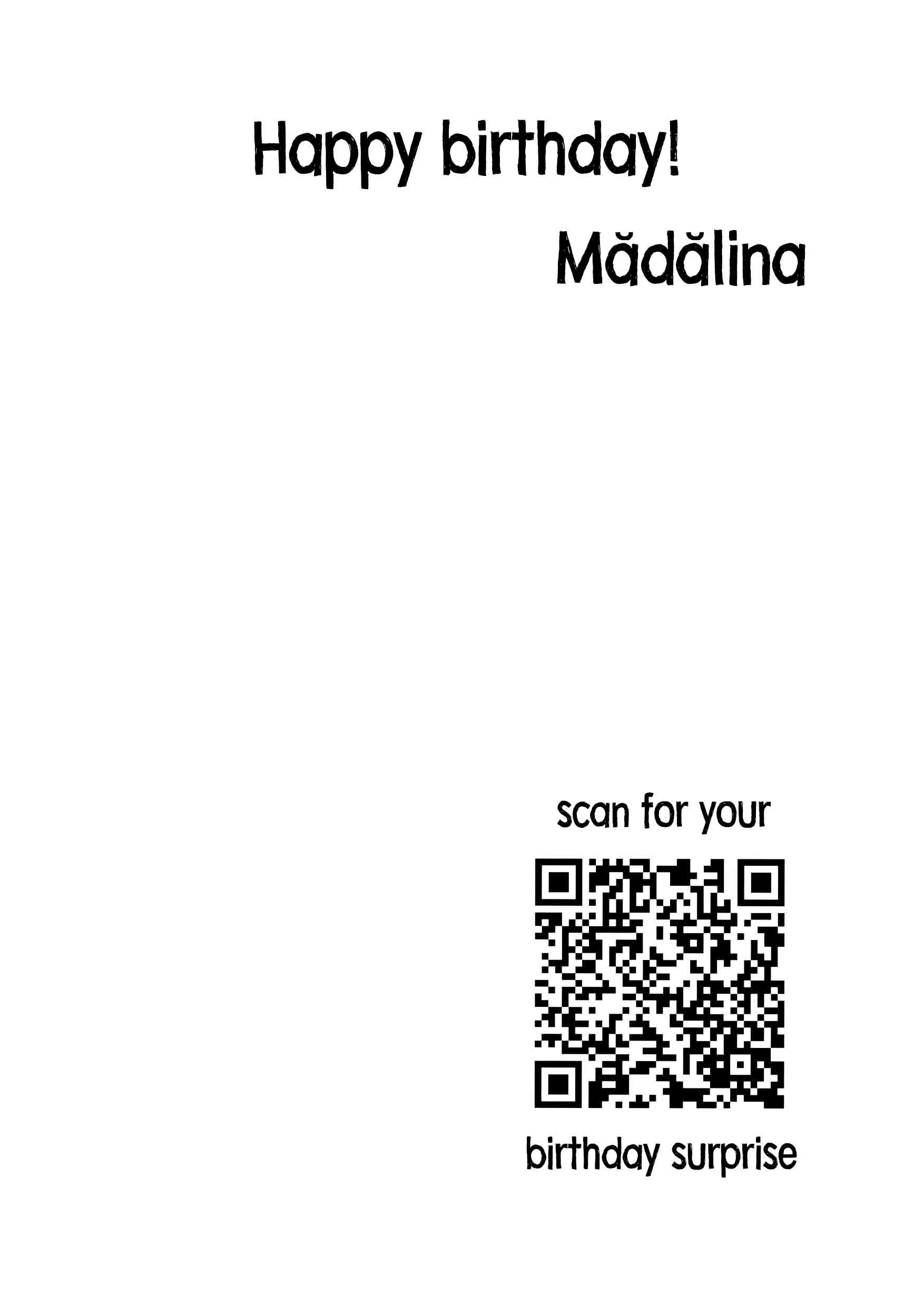 Card personalizat cu text și cod QR - Descoperă surpriza