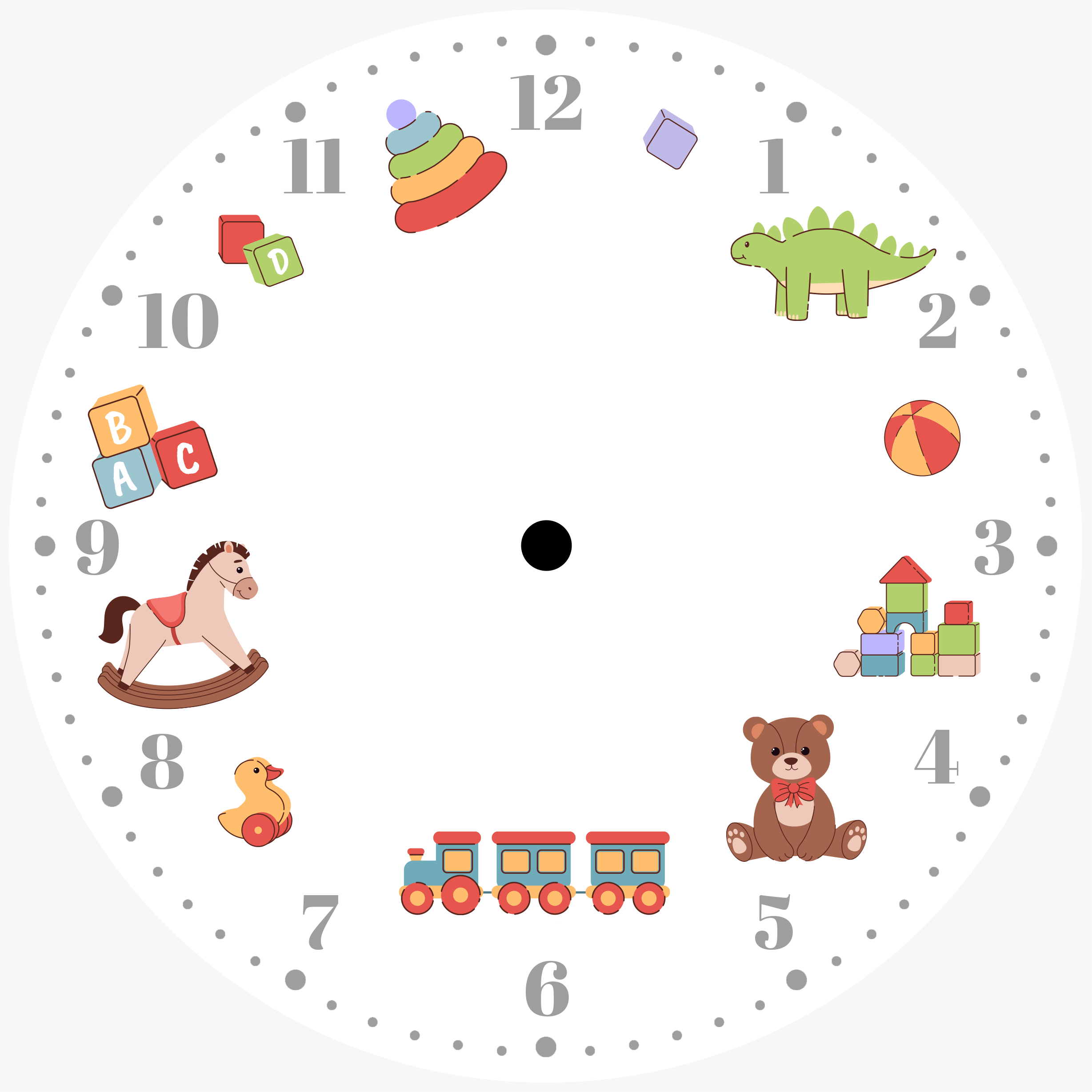 Un ceas de perete adorabil, creat special pentru cei mici! Personalizat cu poza copilului tău și decorat cu jucării colorate și personaje vesele, acest ceas transformă fiecare clipă într-o aventură. Ideal pentru camera copilului, marchează ora de joacă într-un mod distractiv și educativ. Perfect ca decor sau cadou unic pentru zile de naștere, botez sau început de grădiniță, acest ceas devine rapid piesa preferată din cameră – un suvenir plin de zâmbete și amintiri.