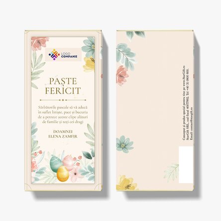 Vezi și alte Cadouri corporate de Paște, Cadouri noi corporate, Ciocolată personalizată, Toate cadourile de Paște, Cadouri personalizate la reducere, Dulciuri și bomboane personalizate, Reduceri de 30% la cadourile corporate de Paște, Dulciuri corporate de Paște, Cadouri corporate, Toate cadourile corporate, Toate cadourile corporate de Paște, Cadouri personalizate de Paște la reducere, Cadouri business.