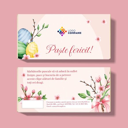 Vezi și alte Cadouri corporate, Cadouri corporate de Paște, Colecția nouă de cadouri corporate de Paște, Dulciuri corporate de Paște, Dulciuri personalizate corporate, Toate cadourile corporate de Paște, Ciocolată personalizată, Dulciuri și bomboane personalizate, Toate cadourile corporate, Toate dulciurile și bomboanele personalizate, Cadouri business.