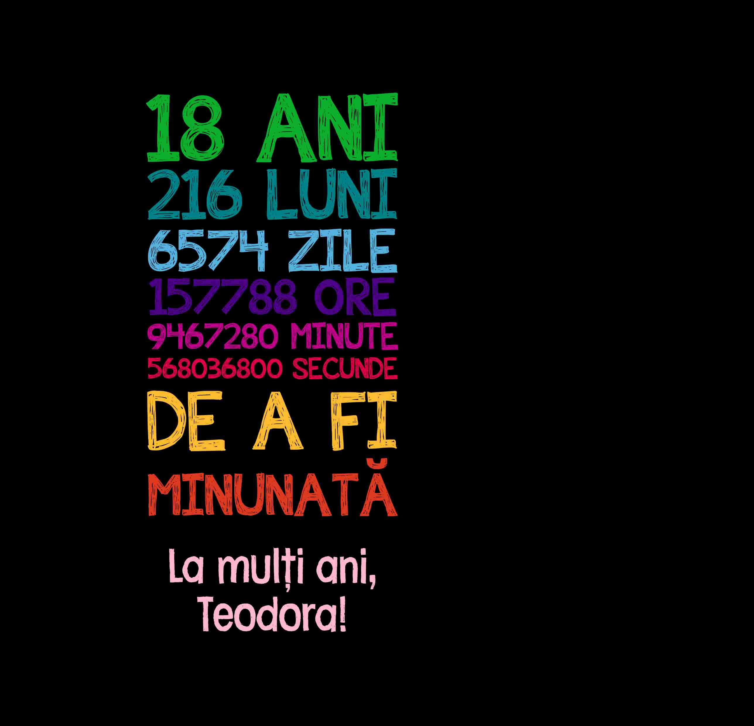 Te-ai gândit vreodată câte secunde, minute, ore, zile și luni încap în numărul vârstei tale? Dacă vrei să oferi un cadou original la împlinirea vârstei aniversare, crează un design perfect cât să îi arăți cât de minunată/minunat este! Ce pot personaliza? Ciocolata poate fi personalizată cu text