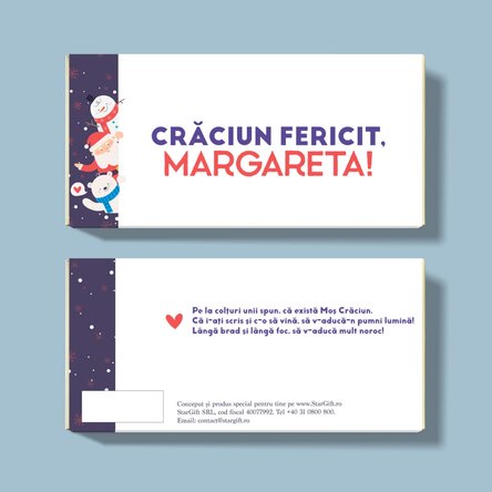 Vezi și alte Cadouri de Crăciun pentru ea, Ciocolată personalizată de Crăciun, Cadouri pentru adolescenti, Cadouri pentru coleg, Cadouri pentru colegă, Cadouri personalizate pentru el, Cadouri pentru fiică, Cadouri pentru frate, Cadouri pentru prieten, Cadouri pentru prietenă, Cadouri personalizate, Cadouri pentru iubitorii de ciocolată, Adolescenți, Adulți, Copii, Toate dulciurile și bomboanele personalizate, Cadouri de Moș Nicolae, Cadouri de Moș Nicolae, Dulciuri de Moș Nicolae , Cadouri de Moș Nicolae pentru ea, Cadouri de Crăciun pentru profesori, Cadouri de Secret Santa, Ciocolată personalizată, Cadouri de Crăciun pentru copii, Cadouri de Moș Nicolae pentru copii, Toate cadourile de Moș Nicolae, Dulciuri personalizate de Crăciun, Cadouri personalizate la reducere, Dulciuri și bomboane personalizate, Dulciuri personalizate la reducere, Toate cadourile de Crăciun.