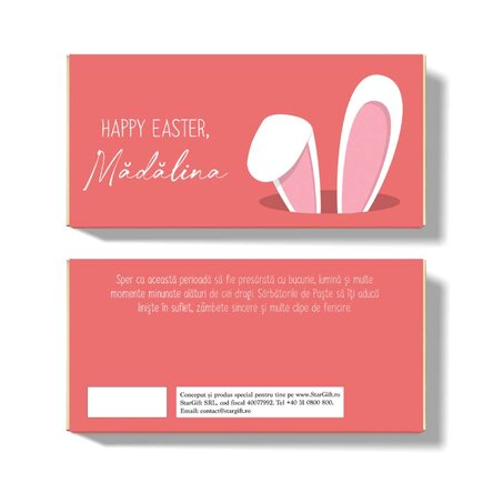 Vezi și alte Cadouri de Paște - la reducere, Cadouri personalizate de Paște, Cadouri personalizate pentru copii de Paște, Dulciuri personalizate pentru Paște, Toate cadourile de Paște, Ciocolată personalizată, Toate dulciurile și bomboanele personalizate, Cadouri personalizate la reducere, Dulciuri și bomboane personalizate.
