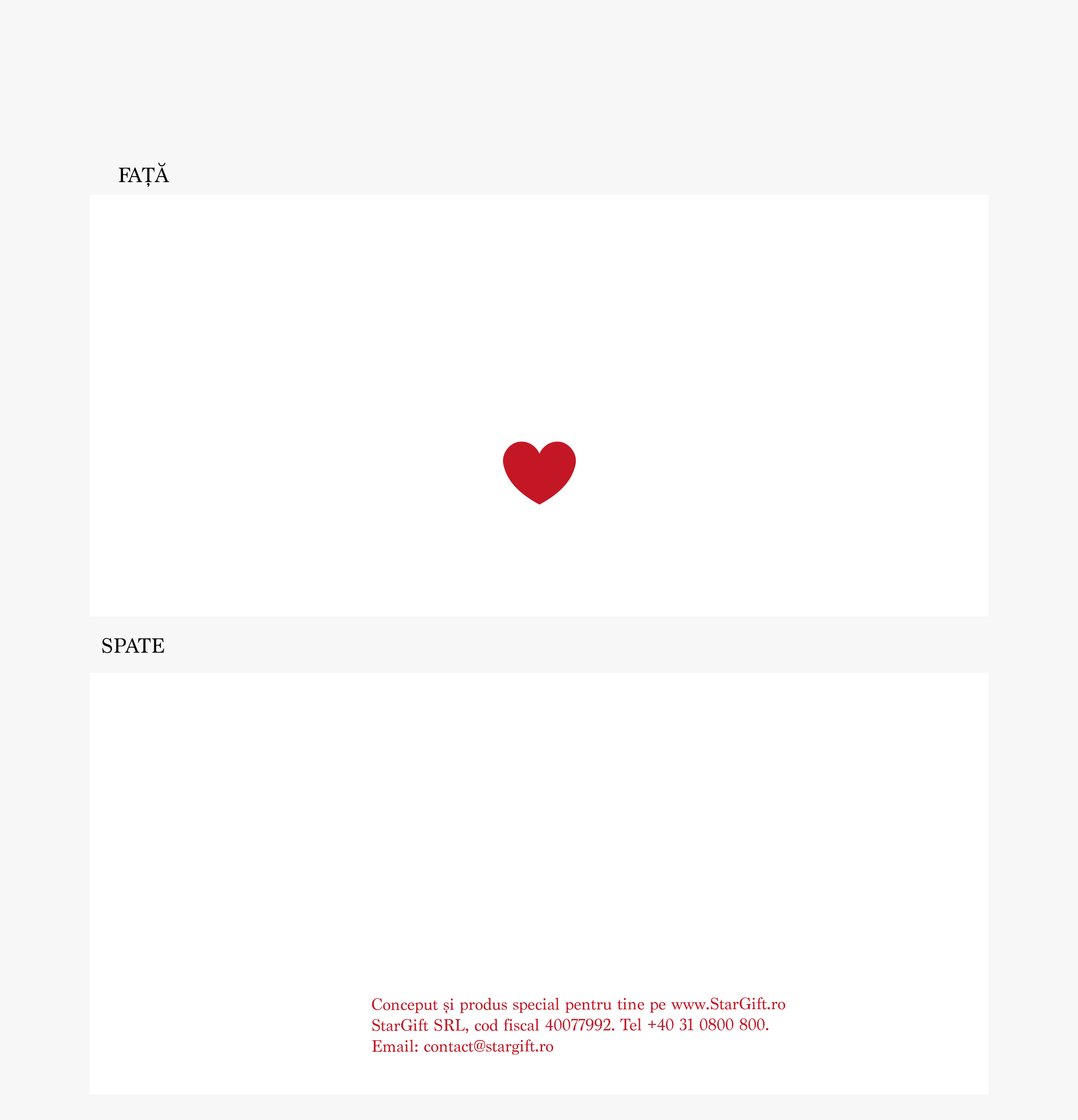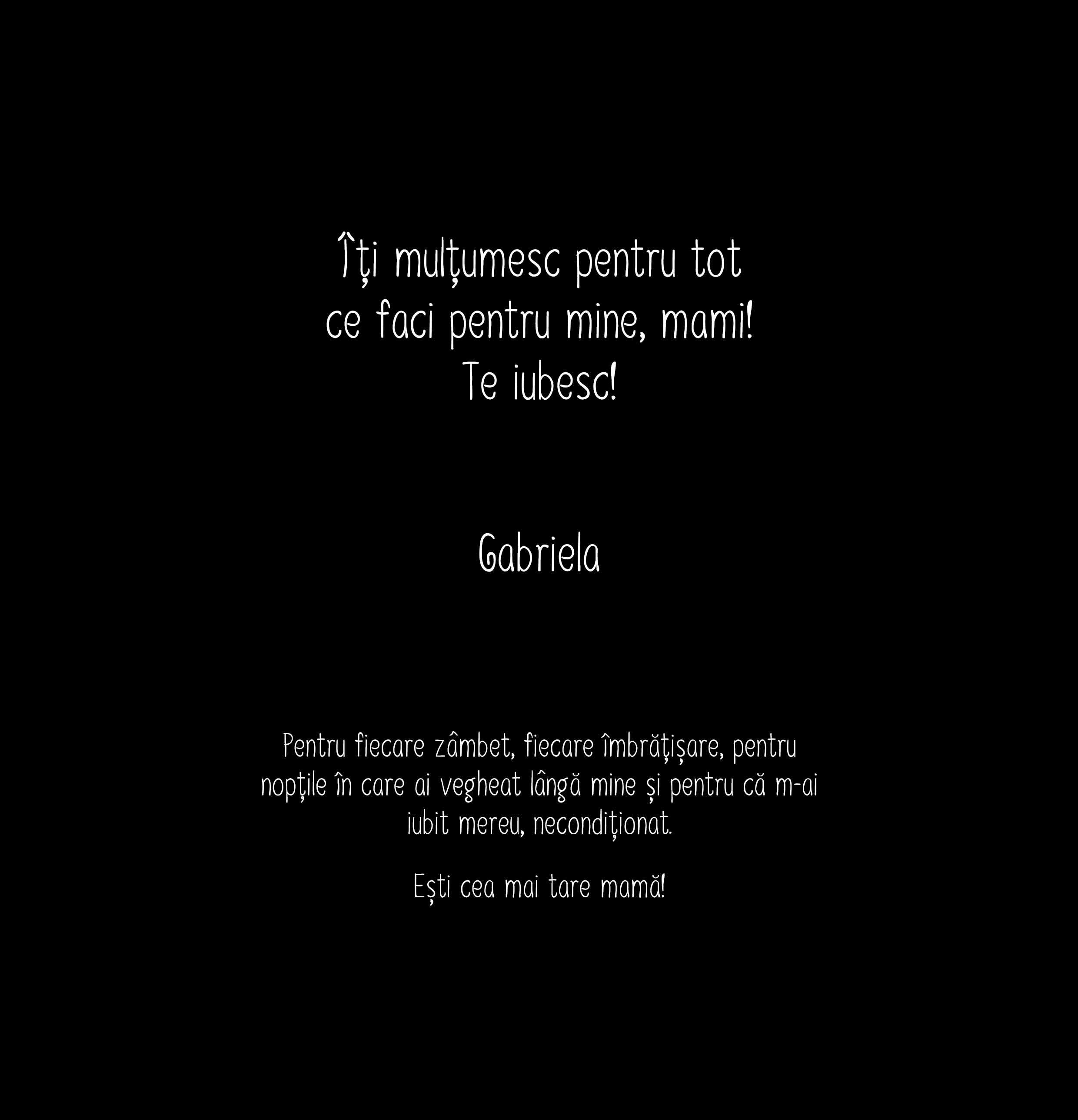 Cum pot face personalizarea? Pasul 1: Apasă pe butonul "Personalizare" Pasul 2: Completează rândurile de text cu mesajul dorit, alege culoarea de fundal și apasă pe butonul "Confirmă" Pasul 3: Cum ai terminat personalizările, apasă butonul "Finalizare" și adaugă produsul în coș.