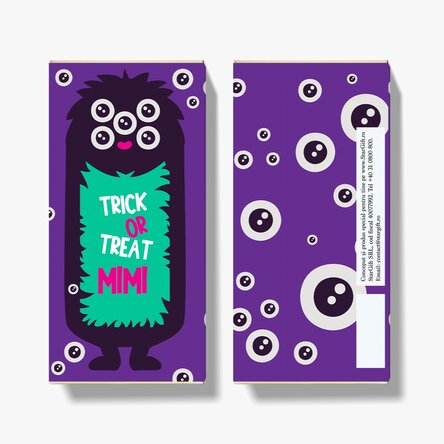 Da, ne-ați prins, nu este înfricoșător, dar nu-i așa ca e adorabil? Uitați-vă numai cât de fericite sunt fantomițele de pe ambalaj, trebuie musai să puteți oferi aceeași stare de spirit (pun intended) și celor care vor savura această ciocolată. Oricum, dincolo de faptul că ambalajul e haios, această ciocolată personalizată este specială și din alt motiv: poți scrie numele persoane care o va primi direct pe ambalaj. Deci dacă vrei să fii gazda perfectă sau musafirul ideal (în cazul în care te duci la altcineva în vizită de Halloween), ai acum o ocazie inedită.