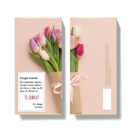 Și tocmai pentru faptul că ea mereu iți spune să nu îi iei ceva prea sofisticat ai putea să îi oferi simplu, o ciocolată. Știi...că în vremurile de demult, pe când erai copil și o rugai să iți cumpere ceva dulce. Într-o simplă ciocolată ai tot pachetul pentru o urare de pomină: cuvinte spuse din inimă, design conceput special pentru ea și multă dulcegăreală. Așezați-vă comod, îndulciți-vă și depanați amintiri!