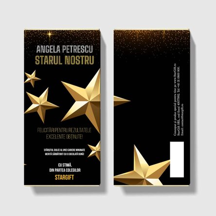 Pregătește o surpriză dulce cu adevărat memorabilă pentru persoana dragă ție. Ticluiește un mesaj măiestrit pe ciocolată și numele sărbătoritei și las-o să se bucure cu stil de un cadou dulce-dulce. Ce pot personaliza? Ciocolata poate fi personalizată cu text.