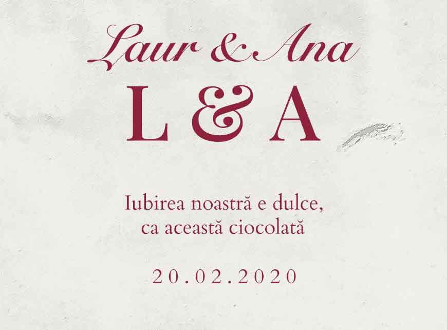 Vezi și alte Aniversare 1 an, Cadouri de 1 martie, Cadouri de aniversare căsătorie, Cadouri de nuntă și cununie, Cadouri romantice, Toate cadourile pentru cupluri, Toate cadourile pentru ea, Toate cadourile pentru iubită, Cadouri personalizate, Recomandările noastre, Cadouri pentru iubitorii de ciocolată, Adulți, Toate dulciurile și bomboanele personalizate, Cadouri de primăvară, Cadouri de 8 martie pentru iubită și soție, Toate cadourile pentru nuntă și cununie, Toate cadourile pentru iubită, Toate cadourile de 8 Martie, Cadouri de Ziua Mamei si de 8 Martie, Ciocolată personalizată, Cadouri de nuntă și cununie, Cadouri de aniversare căsătorie, Cadouri personalizate la reducere, Dulciuri și bomboane personalizate, Dulciuri personalizate pentru nași, Dulciuri personalizate la reducere.