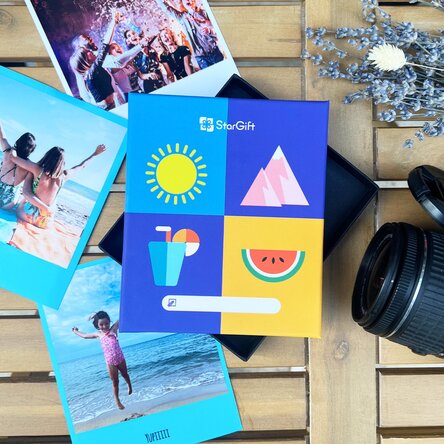 Trebuie doar să alegi cele mai frumoase 32 dintre fotografiile preferate ale sărbătoritului, iar StarGift le va împacheta într-o cutie simpatică ce va stârni curiozitate și va oferi emoție și bucurie! În plus, tot tu poți decide și care va fi culoarea conturului pentru fiecare poză în parte și, mai mult decât atât, poți adăuga și un scurt text pe fiecare fotografie!