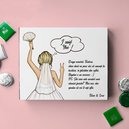 Vezi și alte Cadouri de apreciere, Cadouri de nuntă și cununie, Cadouri de nuntă și cununie, Cadouri pentru mireasă, Cadouri pentru miri, Invitații și cadouri pentru domnișoare de onoare, Cadouri personalizate, Cutii de bomboane, Toate cutiile de bomboane personalizate, Toate dulciurile și bomboanele personalizate, Cadouri, Cadouri în trend, Cadouri noi și originale, Toate cadourile, Cadouri pentru iubitorii de ciocolată, Dulciuri personalizate la reducere.