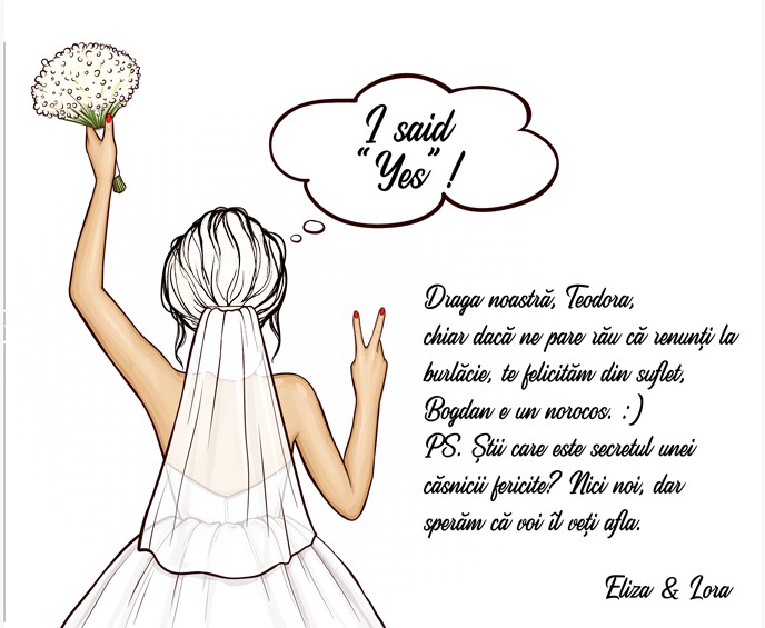 Dacă vrei ca fetele să se simtă cu adevărat ca prezența lor la nunta ta este cu totul specială și importantă pentru tine, atunci invitația trebuie să fie una cu totul deosebită! Adaugă un mesaj creativ și gata! Cererea de "Vrei să fii domnișoară mea de onoare?" este gata!