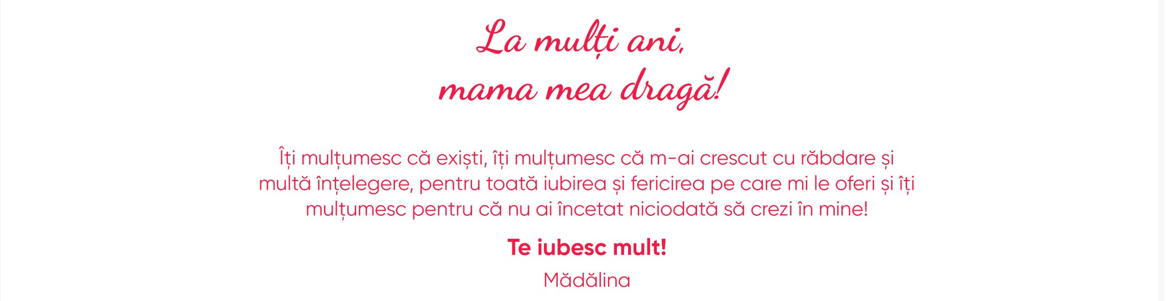 Vezi și alte Cadouri de 8 Martie, Cadouri de zi de naștere, Cadouri de zi de naștere pentru ea, Cadouri de Ziua Mamei si de 8 Martie, Cadouri personalizate de 8 martie pentru bunica, Cadouri personalizate de 8 martie pentru mama, Ciocolată personalizată pentru Mărțișor, Cutii de bomboane personalizate pentru zile de naștere, Cutii de ciocolată personalizate de 8 Martie, Cutii de ciocolată personalizate de Mărțișor, Dulciuri pentru 8 martie, Dulciuri pentru mama, Dulciuri personalizate pentru Mărțișor, Dulciuri personalizate pentru zi de naștere, Toate cadourile de 8 Martie, Cadouri de 8 martie pentru iubită și soție, Cadouri pentru soție, Cadouri personalizate pentru iubită, Cadouri personalizate pentru mama, Cadouri personalizate pentru profesoare de 8 martie, Ciocolată pentru mama, Dulciuri personalizate pentru ea, Dulciuri personalizate pentru iubită, Primul 8 martie ca mamă, Toate cadourile pentru iubită, Toate cadourile pentru mama, Cadouri personalizate, Cutii de bomboane, Toate cutiile de bomboane personalizate, Toate dulciurile și bomboanele personalizate, Cadouri, Cadouri în trend, Cadouri noi și originale, Toate cadourile, Cadouri pentru iubitorii de ciocolată, Cutii de bomboane personalizate, Dulciuri personalizate pentru bunici, Dulciuri personalizate la reducere, Toate cadourile de zi de naștere.