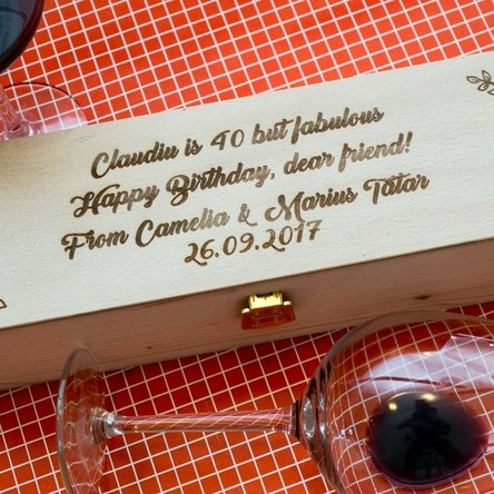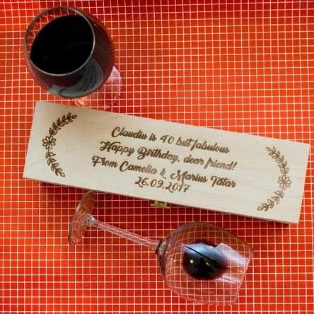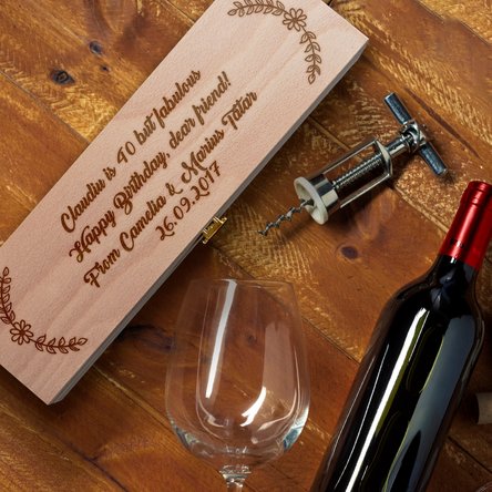 Este un dar deosebit, cu o notă unică, dată de mesajul gravat în lemn, pe care orice persoană îl va păstra cu drag. Ca să vă asigurați că veți avea cadoul perfect, completați cutia și cu o sticlă de vin din sortimentele alese oferite de StarGift.
