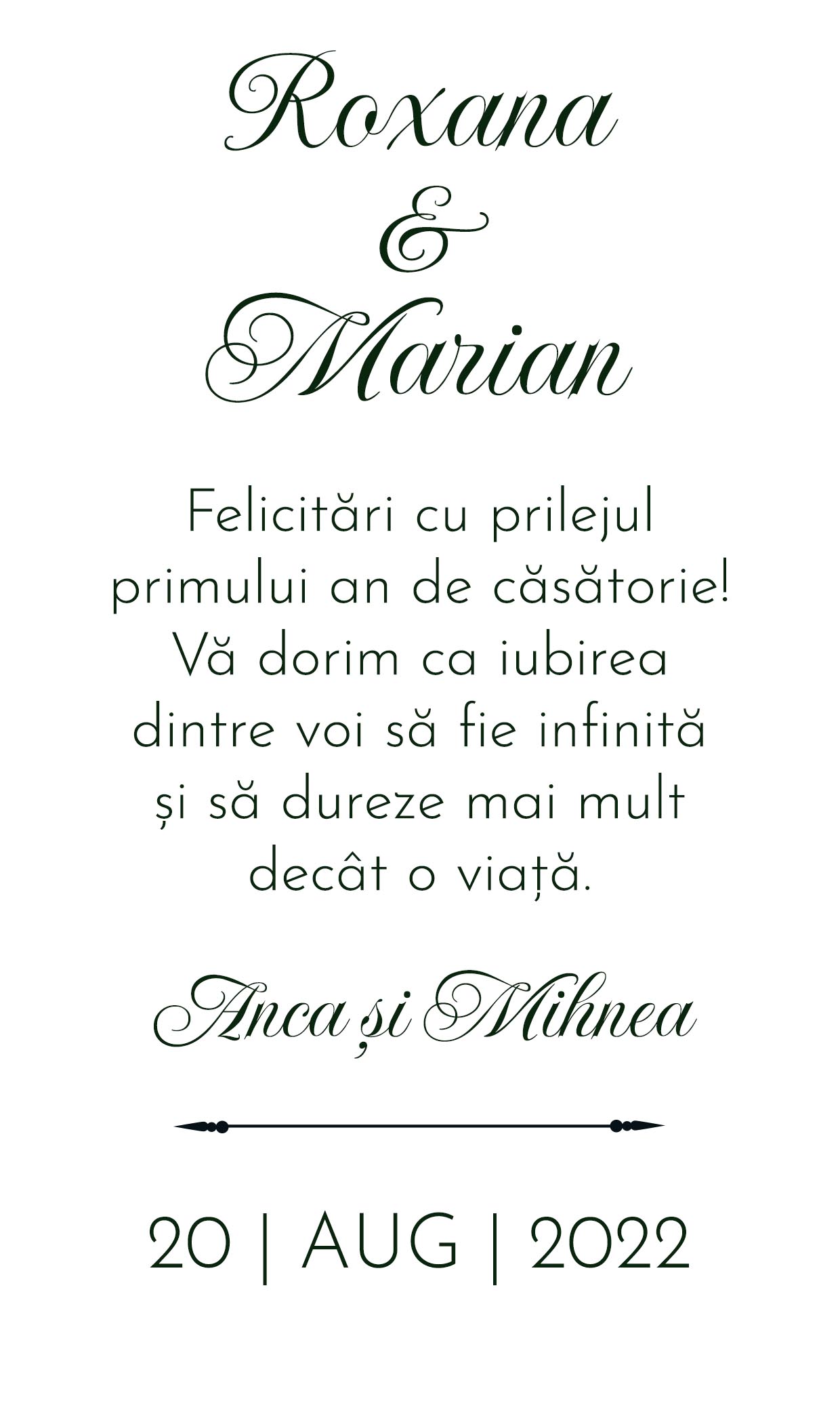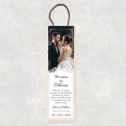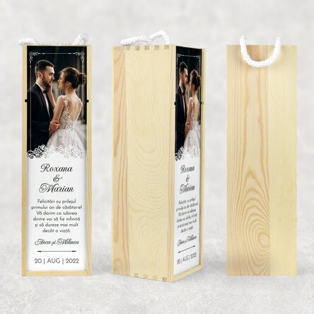 Aniversarea căsniciei voastre sau a relației este, fără doar și poate, un eveniment aparte al vieții voastre de cuplu, astfel că trebuie să îl sărbătoriți așa cum se cuvine! Și pentru că este o ocazie atât de specială, se impune și un cadou la fel de special! Cu un design unic și elegant pe fața cutiei și o notă personalizată, cutia se va potrivi perfect prin imaginea sau textul pe care îl poți personaliza chiar tu!