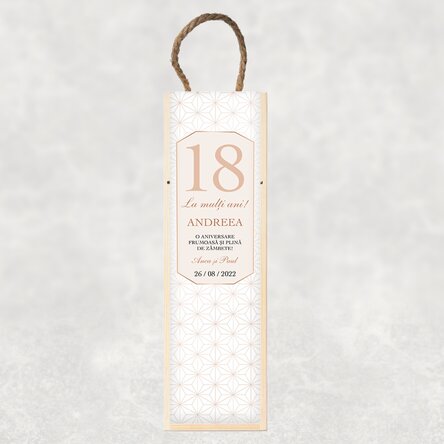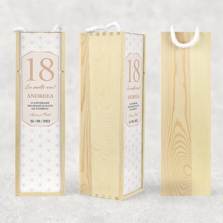 La vârsta majoratului e musai să primești un cadou pe măsură iar pentru faptul că tot e cu "dezlegare" la consumul de băutură poți opta pentru o cutie și un vin personalizat alături. Nu e vorba de o cutie de vin simplă, ci de una personalizată pe care o poți crea după vârsta sarbatorirului, dată și un mesaj scris din suflet pentru frumoasa vârstă.