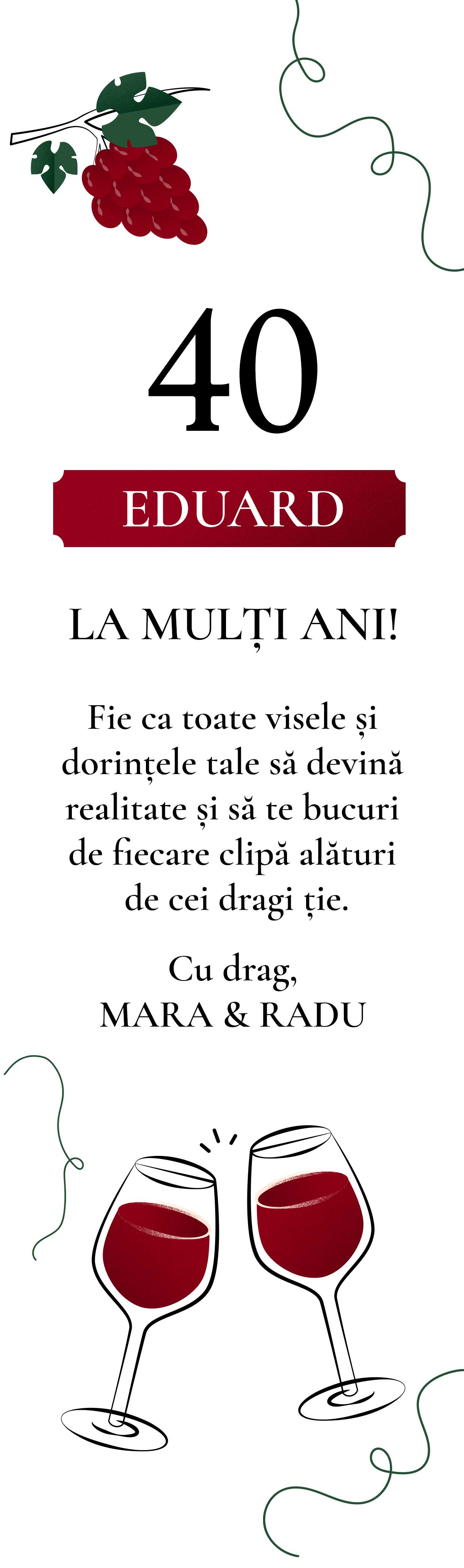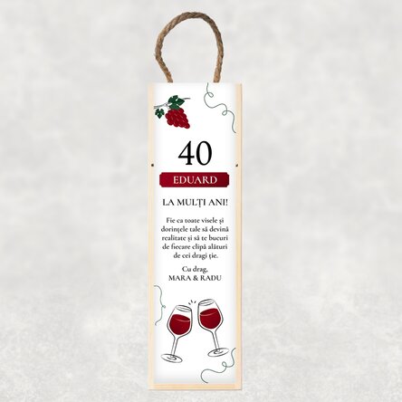 Notă: Vinul nu se poate alege. În funcție de stocul disponibil se trimite Budureasca sau Domeniile AvereștiVezi și alte Cadouri de zi de naștere, Cadouri de zi de naștere pentru el, Idei de cadouri pentru zile de naștere, Cadouri personalizate pentru el, Cutii de vin personalizate pentru o sticlă, Cadouri personalizate, Cutii de vin personalizate din lemn, Cutii de vin personalizate cu poză, Recomandările noastre, Cadouri pentru pasionații de vinuri, Vinuri, Adulți, Toate cutiile de vin, Cadouri noi și originale, Cadouri personalizate pentru 40 ani, Toate cadourile pentru el, Toate cadourile de zi de naștere.