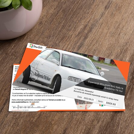 In exclusivitate, vei fi un adevarat copilot in masina de raliu a lui Titi Aur: Mitsubishi EVO IX, pe un traseu mixt de asfalt – macadam si te vei bucura de momente unice!
