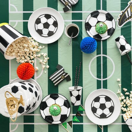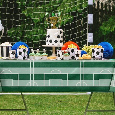 Transformă masa într-un adevărat teren de joc! Această față de masă cu imprimeu de teren de fotbal este alegerea perfectă pentru petreceri tematice, aniversări sau seri distractive alături de prieteni și familie. Realizată din material rezistent, aduce energie și bună dispoziție oricărei mese. Ideală pentru micii și marii fani ai fotbalului!