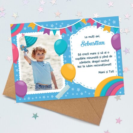 Se apropie ziua celui mic și vrei un cadou cu care să îl surprinzi și să îi faci ziua de naștere specială? Pe lângă clasicul cadou adaugă și această felicitare magnetică personalizată cu poză unde poți adăuga și un mesaj.