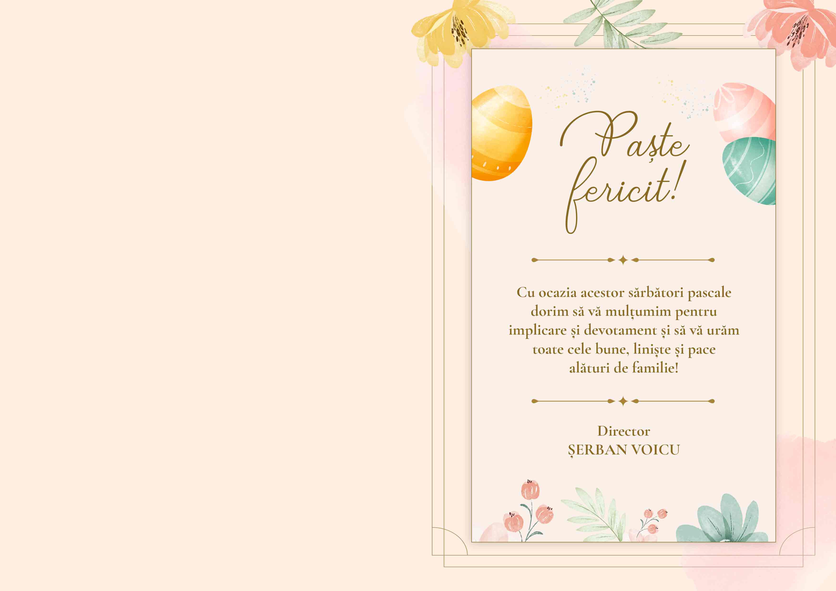 În pragul sărbătorilor Pascale poți oferi o felicitare personalizată cu logo-ul companiei tale și cele mai frumoase urări de bine.