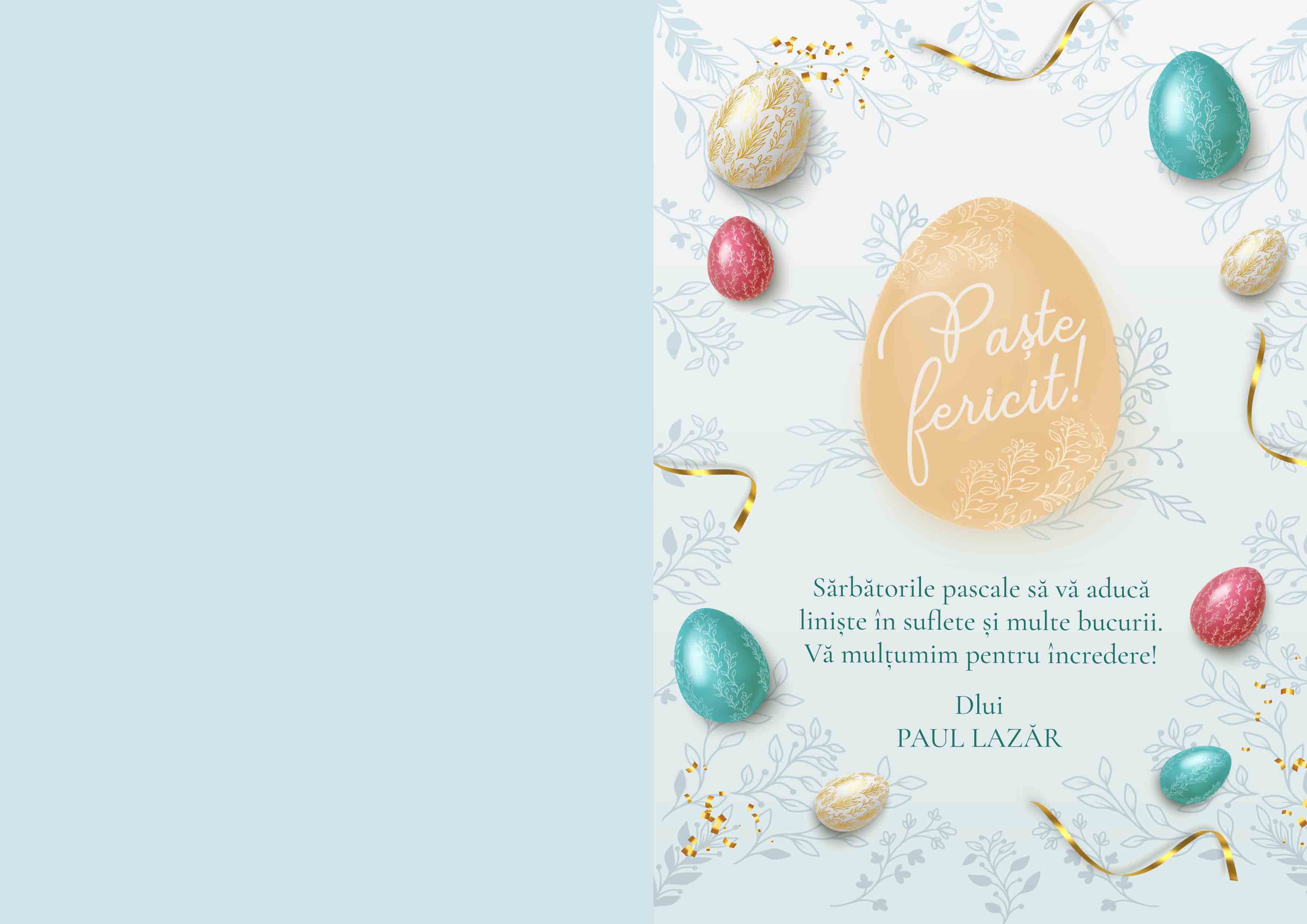 Vezi și alte Cadouri corporate de Paște, Felicitări și carduri corporate de Paște, Cadouri noi corporate, Felicitari si carduri la reducere, Toate felicitările și cardurile personalizate, Felicitări și carduri cu text, Toate cadourile de Paște, Reduceri de 50% la cadourile corporate de Paște, Cadouri corporate, Toate cadourile corporate, Toate cadourile corporate de Paște, Cadouri personalizate de Paște la reducere, Felicitări personalizate, Cadouri business, Felicitări și carduri personalizate.