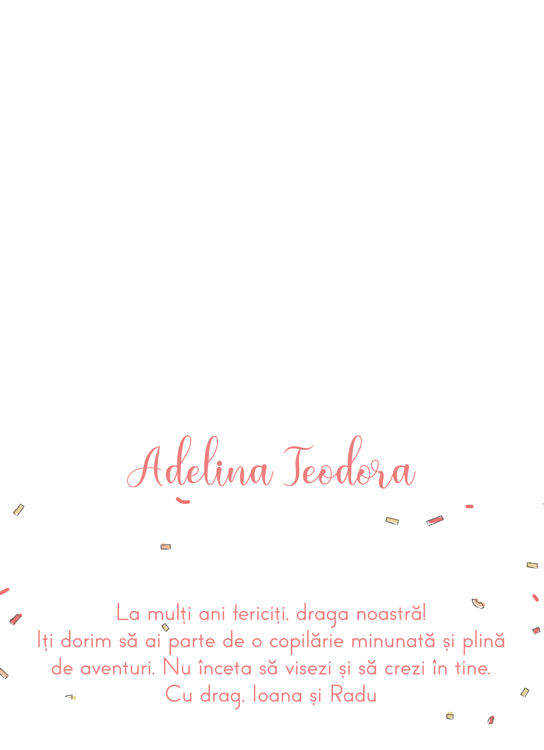 Vezi și alte Cadouri de zi de naștere, Felicitări personalizate pentru zi de naștere, Toate cadourile de zi de naștere pentru copii, Felicitări pentru copii, Cadouri, Felicitari si carduri la reducere, Toate felicitările și cardurile personalizate, Felicitări și carduri cu poze, Cadouri de aniversare pentru copii, Top 100 cadouri aniversare la reducere, Felicitari si carduri reduse cu 60%, Cadouri personalizate la reducere, Cadouri de 1 iunie si Ziua Copilului, Felicitări personalizate, Toate cadourile de zi de naștere, Felicitări și carduri personalizate.