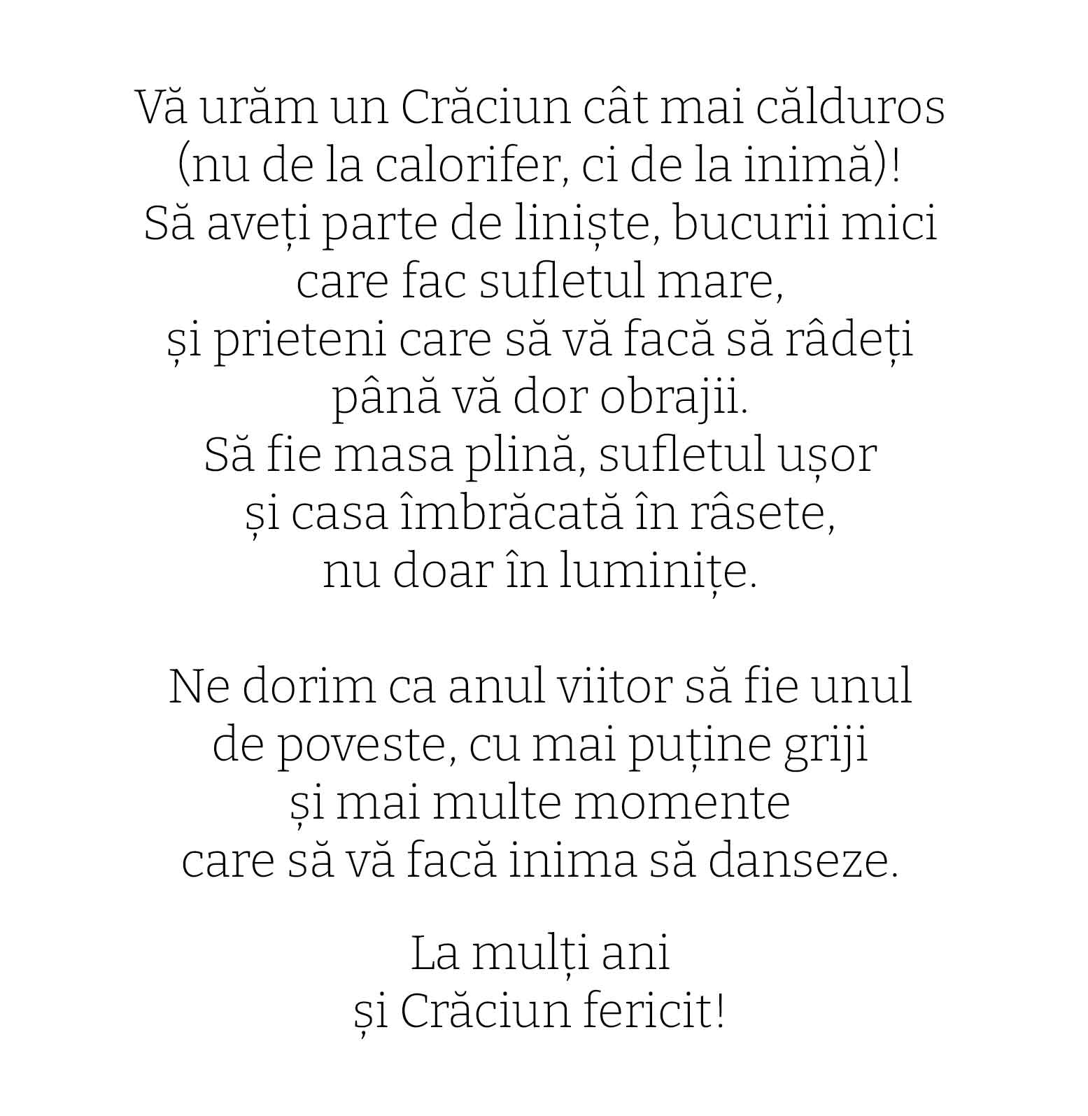 Vezi și alte Cadouri de Crăciun, Cadouri de Crăciun pentru bunici, Cadouri de Crăciun pentru ea, Cadouri de Crăciun pentru el, Cadouri de Crăciun pentru prieteni, Felicitări pentru ea, Felicitări pentru el , Colecția nouă de Crăciun, Felicitări și carduri cu text, Felicitări și carduri personalizate, Toate felicitările și cardurile personalizate, Colecție nouă - cadouri personalizate de la Moș Nicolae, Felicitări, carduri și magneți de Crăciun, Felicitări și carduri de Crăciun, Cadouri amuzante de Crăciun, Felicitări personalizate, Toate cadourile de Crăciun, Felicitări și carduri personalizate.