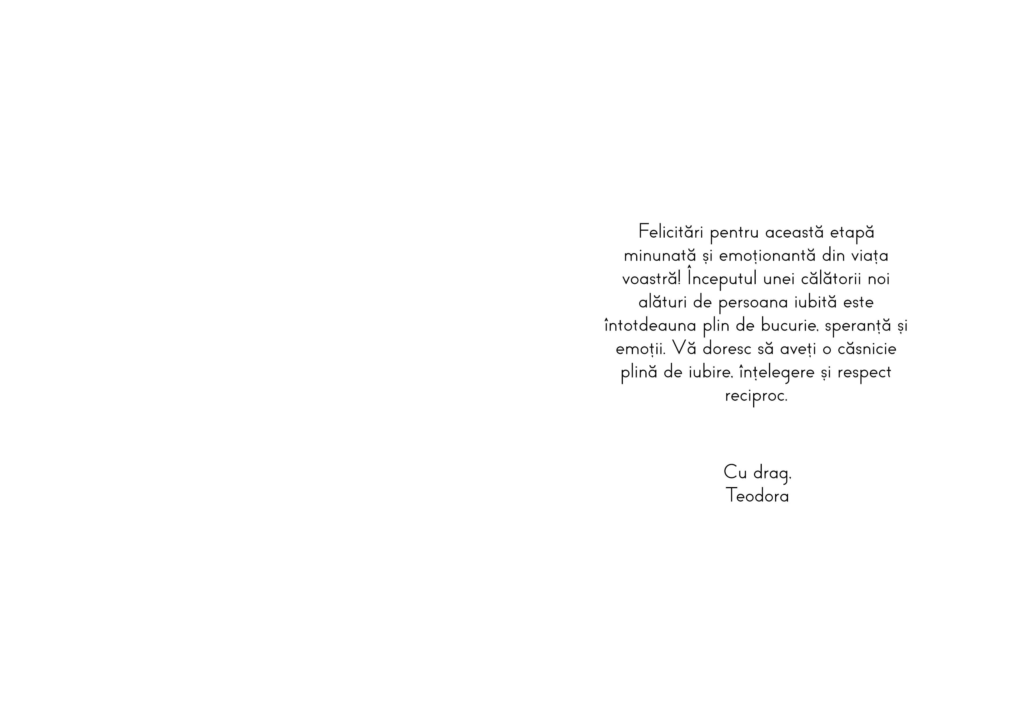 Vezi și alte Cadouri de nuntă și cununie, Cadouri personalizate, Cadouri, Cadouri pentru miri, Toate cadourile pentru nuntă și cununie, Felicitari si carduri la reducere, Felicitări, carduri și invitații de nuntă și cununie, Toate felicitările și cardurile personalizate, Felicitări și carduri cu text, Cadouri de nuntă și cununie, Felicitări personalizate, Felicitări și carduri personalizate.
