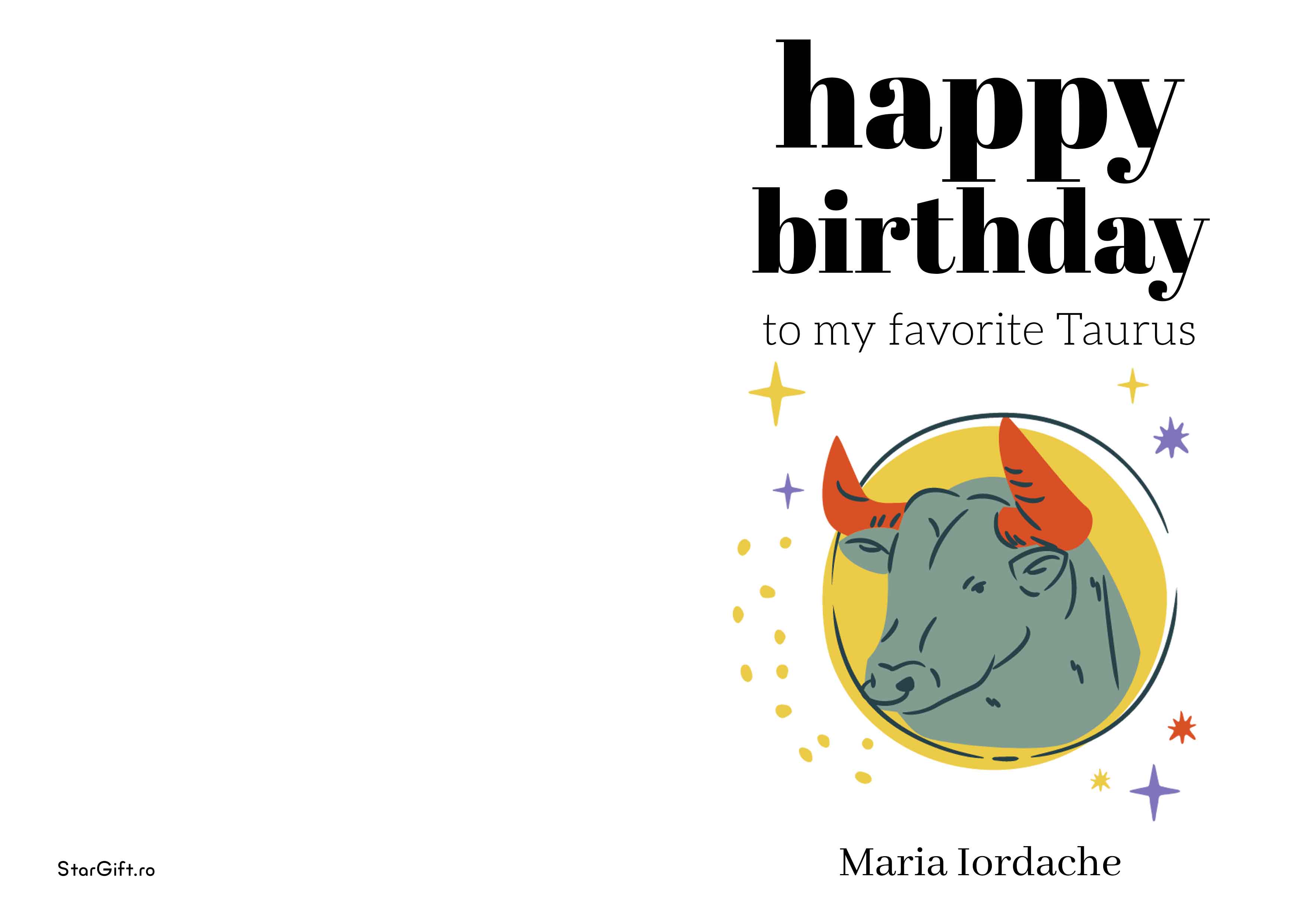 Pentru calmul de nezdruncinat și pentru devotament său, nativul Taur merită o felicitare prin care să le arătăm recunoștință și apreciere la fiecare pas.