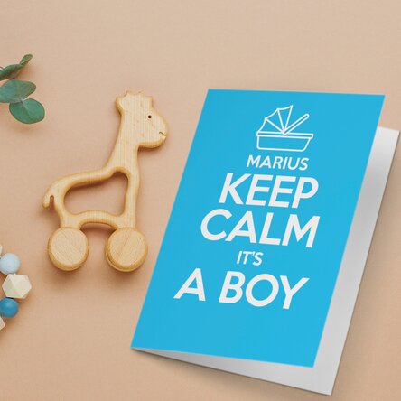 personaliza cu numele ei și cu îndemnul prietenesc :”keep calm it’s a boy”?