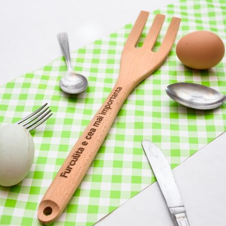 de folos. Furculița noastră de lemn personalizată este la datorie! Nu este o