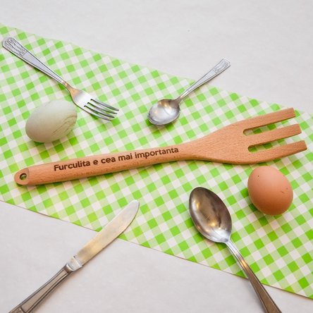 Ce pot scrie pe furculiță?Poți personaliza fuculița cu orice mesaj de până la 30 caractere.