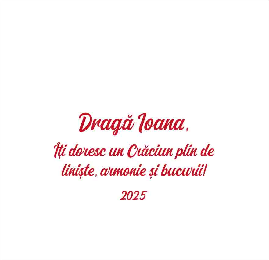 Vezi și alte Cadouri de Crăciun, Cadouri de Crăciun pentru bunici, Cadouri de Crăciun pentru copii, Cadouri de Crăciun pentru ea, Cadouri de Crăciun pentru el, Cadouri de Crăciun pentru părinți, Cadouri de Crăciun pentru prieteni, Cadouri de Moș Nicolae pentru copii, Colecție nouă - cadouri personalizate de la Moș Nicolae, Globuri de birou personalizate de Crăciun, Cadouri personalizate, Colecția nouă de Crăciun, Globuri de birou personalizate, Globuri personalizate, Toate cadourile de Crăciun.