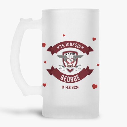 Halbă de bere FC Rapid personalizată cu text - Valentine's Day