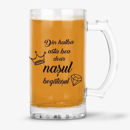 Halbă de bere personalizată cu mesaj pentru naș