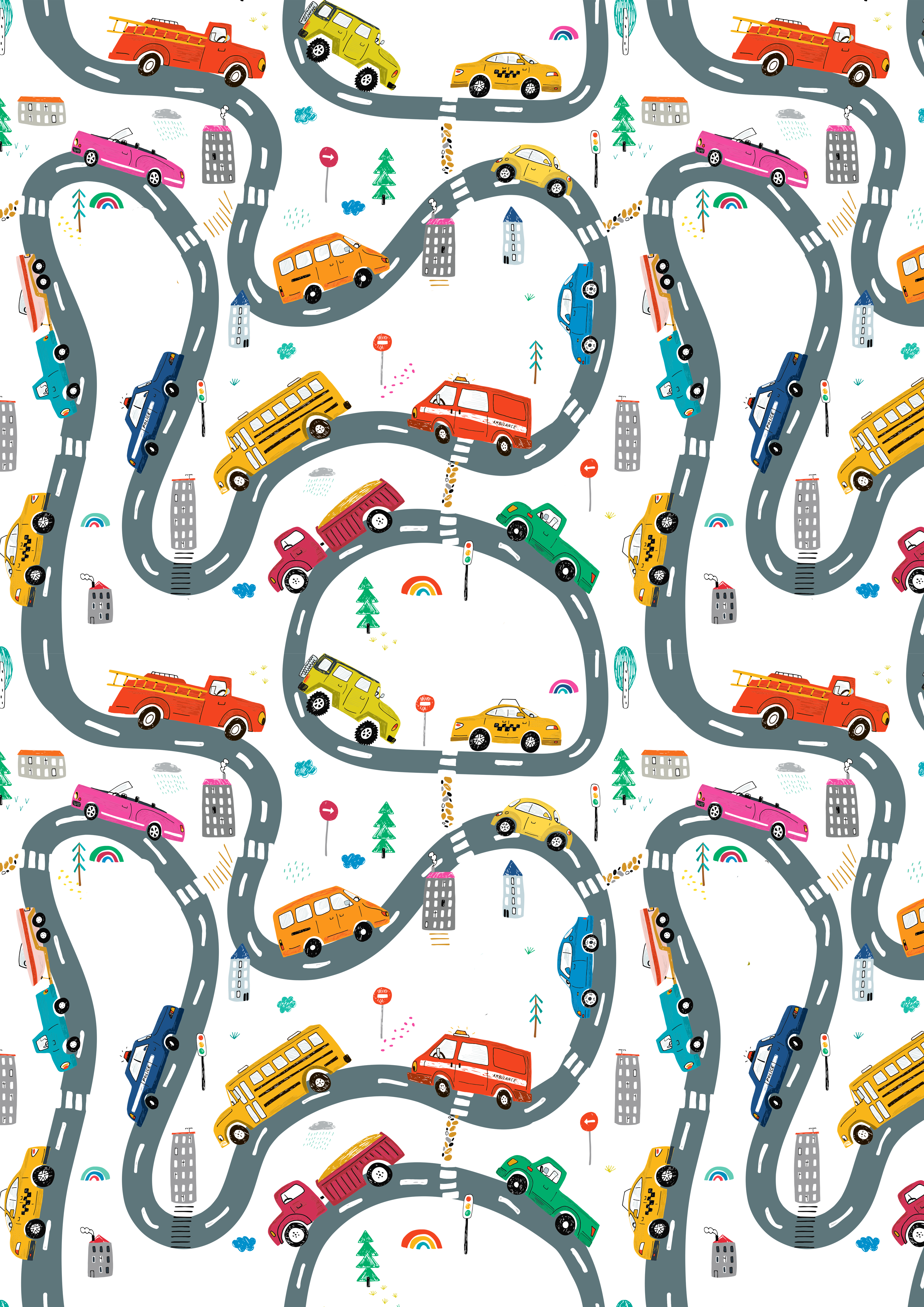 Cu un model amuzant, cu nuanțe vibrante și cu mașinuțe colorate ce călătoresc liniștite pe străduțele ondulate, hârtia de împachetat este creată pentru a aduce bucurie în sufletele tuturor iubitorilor de mașini.
